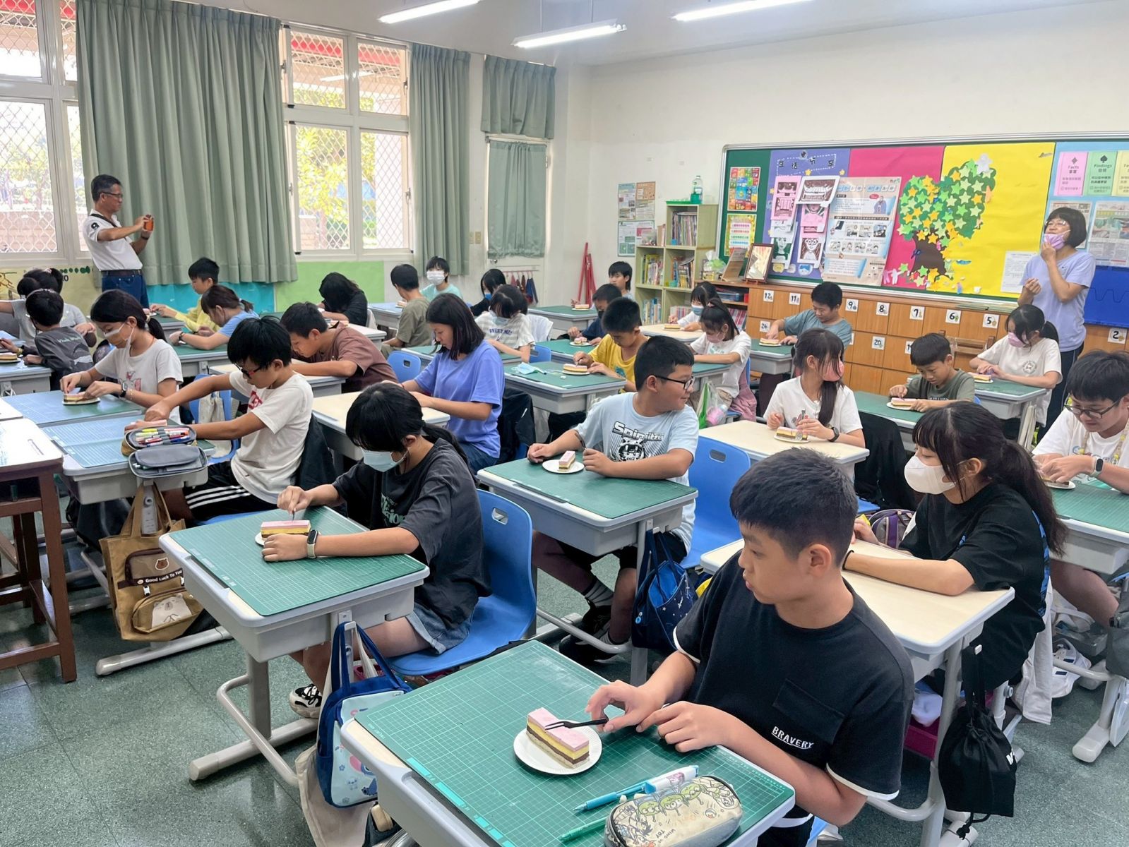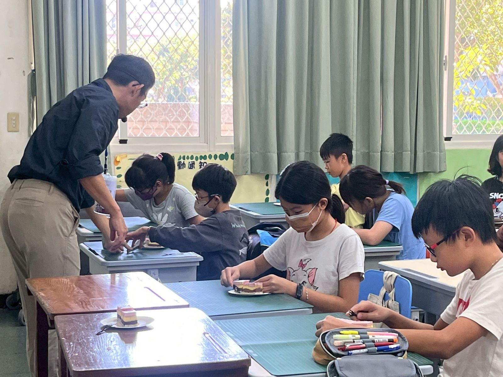 課程中老師特別介紹沙鹿國小的地理位置,讓學生更貼近生活的感受大肚台地斷層帶與自身環境的關聯,更以好吃好玩的「大肚山地質蛋糕」模擬成大肚山的紅土層、礫岩層、頁岩與泥岩層,讓孩子們在觀察與品嚐中認識家鄉土地的地質結構,也了解沙鹿紅土地質孕育出地瓜、花生與芝麻等農作物以及建構出土角厝的特色文化,對於家鄉土地有更深的認識,進一步培養對家鄉土地的理解與關懷。
