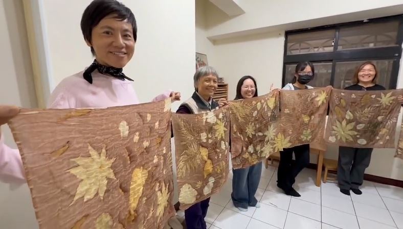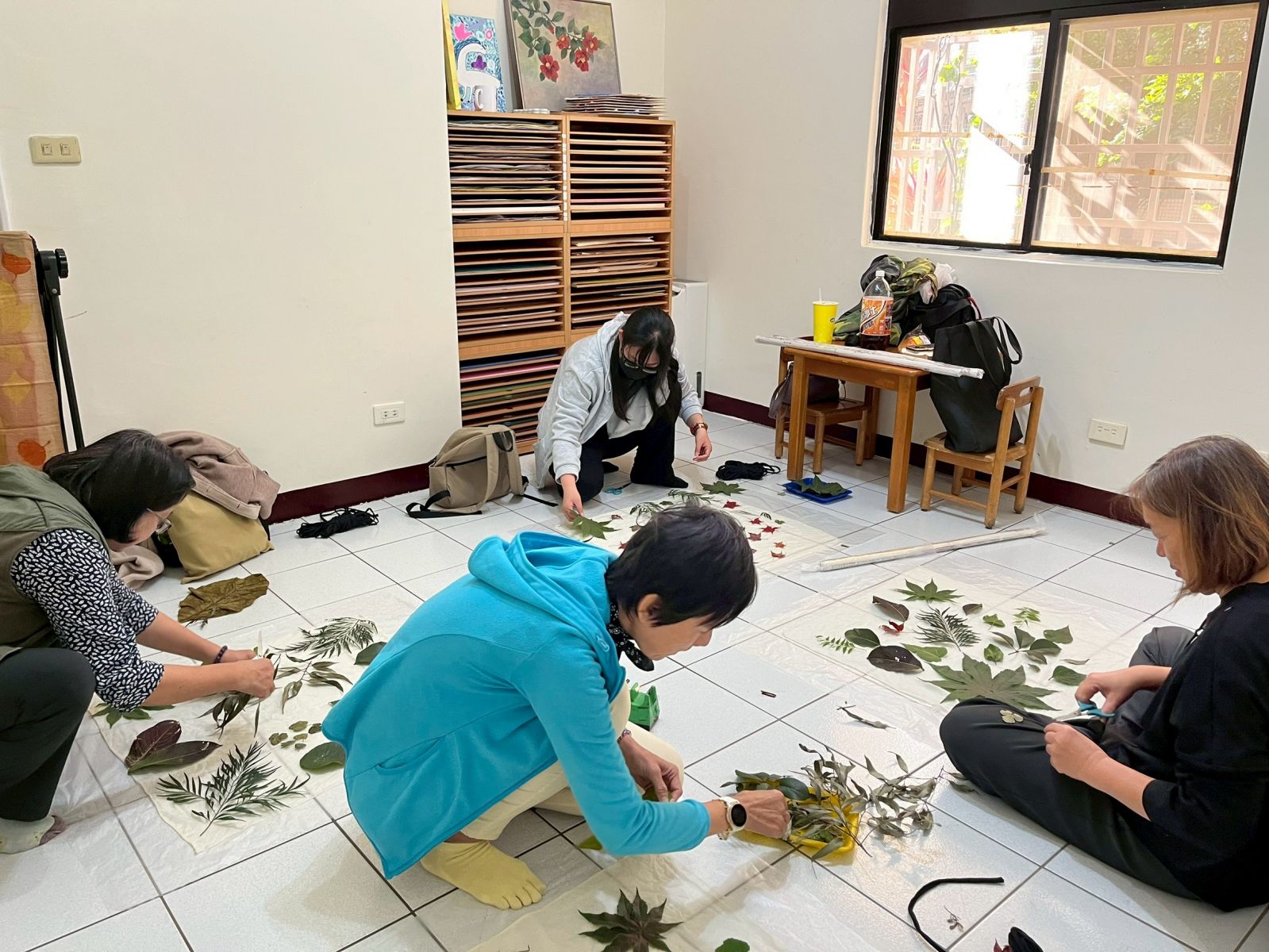我們撿拾在地的自然落葉作為創作素材,以羊毛巾為載體,並運用傳統的薯榔為基底進行植物巧印染,不僅重拾先民對於生活美學的應用智慧,更為我們的日常增添美學樂趣,創造出獨一無二的個人作品,學員也在過程中深刻體會尊重自然、善待土地的意義。