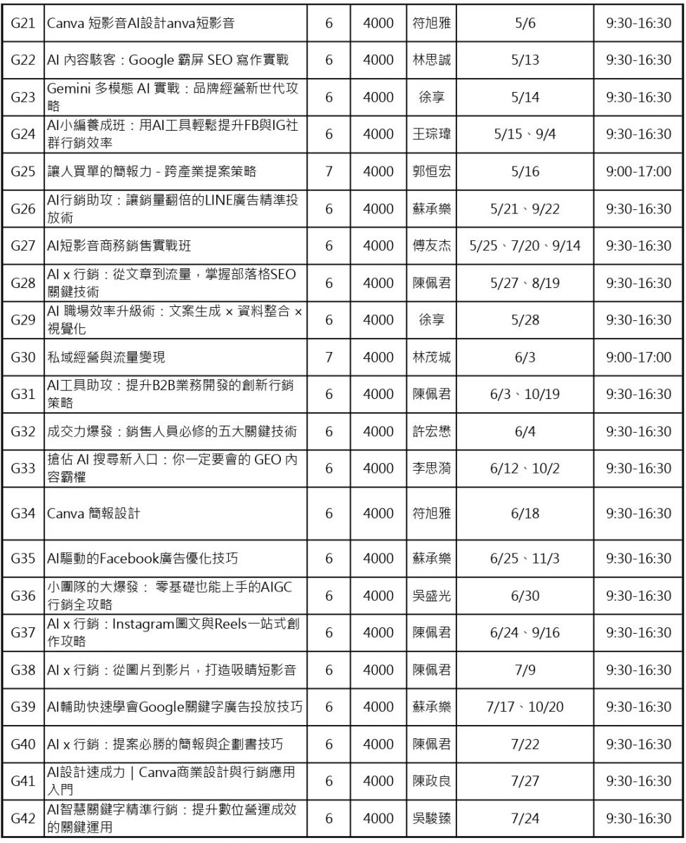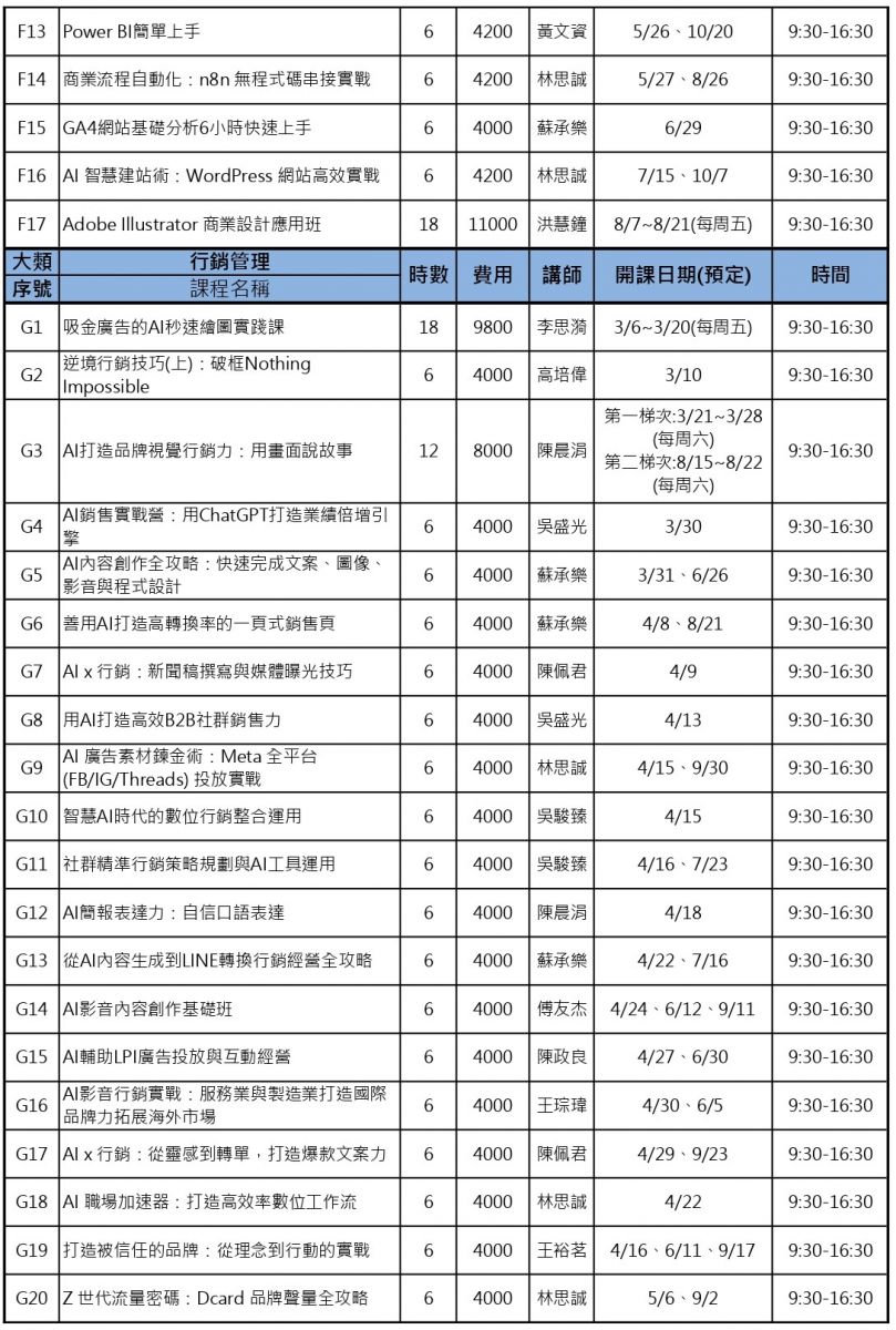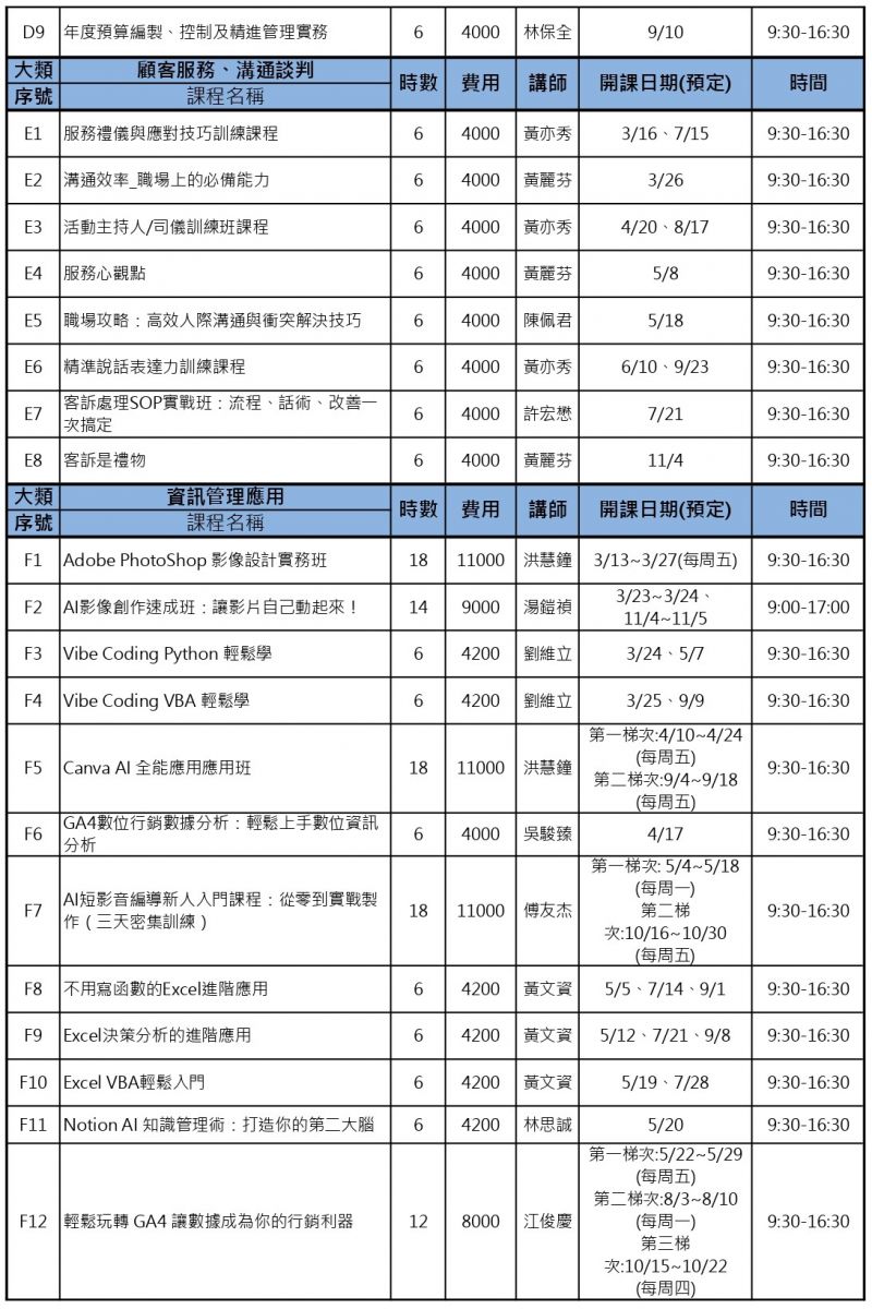 ※詳細以各課程內容為準。